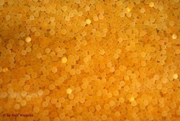 Rogen der Fische differieren in Farbe und Größe.